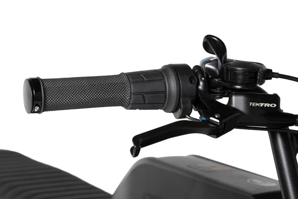 Technische voordelen: Dubbele voorvering, enkele achtervering, en TEKTRO hydraulische remmen voor maximale controle en veiligheid.
